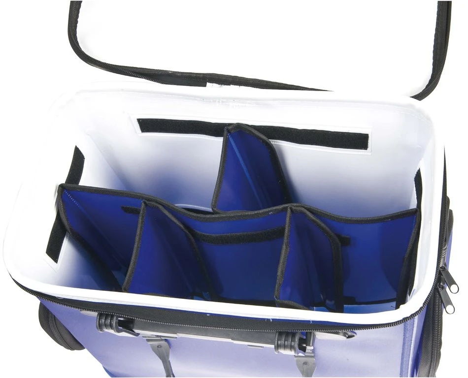 Diese wasserdichte Tasche ist durch die angebrachten Rutenhalter zu einer Art Basistasche für den ambitionierten Meeresangler geworden. Eine durch Klettband variable Inneneinteilung macht die Nautic Bag besonders flexibel. Auf der Außenseiten angebrachte Taschen sorgen für die Unterbringung von Kleinteilen. Zudem ist noch ein Halter für eine Zange befestigt.