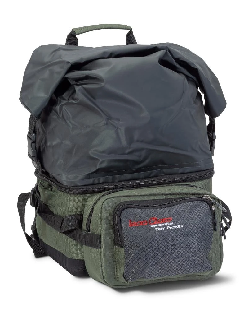 Kurz gesagt, ein Rucksack mit „Trockenabteil“. Der obere Teil des Iron Claw Dry Packer ist aus Heavy Duty PVC gefertigt und mittels Rollsystem wasserdicht verschließbar. Im separaten, unteren Fach des Rucksacks befinden sich vier Boxen. zudem ist die frontseitig aufgebrachte Tasche mittels Clips abnehmbar und lässt sich durch den angebrachten Gurt auch separat als Bauchtasche einsetzen.