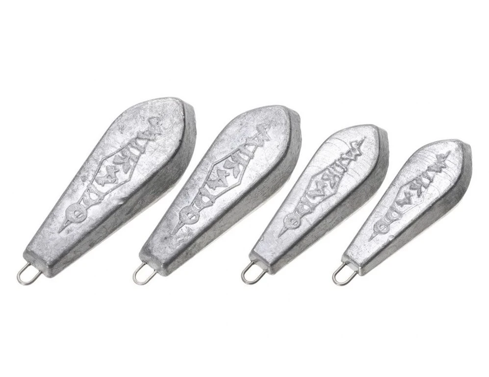 Diese Bleigewichte in Prismenform sind konische geformt und besitzen ein Öhr. Die Lieferung erfolgt als 2er Pack. Es gibt die Gewichte 100g, 120g, 150g und 175g. Ideal zum Brandungs- und Grundangeln.
