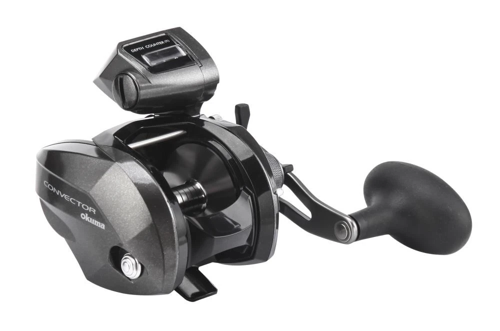 Dies ist eine flache Baitcast-Rolle mit Schnurzähler und cleverer Quick Drop Switch-Funktion zum Schleppen. Drücken Sie bei eingeschaltetem Quick Drop die Daumentaste, um die Spule freizugeben. Nehmen Sie den Druck von der Taste und die Spule rasset wieder ein. Einfach genial!