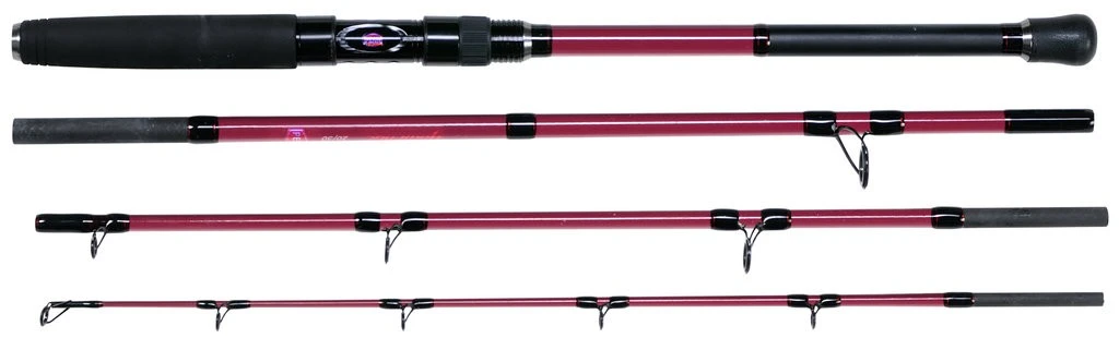 Die 4-geteilten PENN® RAMPAGEII® Bootsruten sind, dank der neue Blank Konstruktion, extrem leicht und können sowohl mit monofiler als auch mit geflochtener Schnur verwendet werden. Die Rute ist in drei verschiedenen Größen mit unterschiedlicher Testkurve verfügbar. Geliefert werden diese Ruten in einem Cordura-Transportrohr.