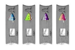 Mit dem Rhino Sandaal-Baitholder ist es möglich, sowohl Sandaale aus Gummi (im Lieferumfang enthalten) als auch entsprechende Naturköder einzusetzen. Beim Einsatz echter Sandaale wird das Haken-Rig von hinten durch die Kiemen durch das Maul geführt und in der Öse im Kopf gesichert, während der Haken an der Flanke eingestochen wird. Die Sicherung des Köders in Kopf erfolgt mit einem Zahnstocher. In der ausgelieferten „ready to fish“-Variante ist bereits ein naturgetreuer Sandaalschwanz montiert. Sein Laufverhalten ähnelt dem eines natürlichen Sandaals sehr, je nach Anströmung schwänzelt er nicht nur, sondern bricht ab und an seitlich aus – bis hin zu einer ganzen Rolle um die Längsachse. Dieses Laufverhalten scheint den Räubern sehr zu gefallen, denn unzählige Fische wurden schon in der Testphase überlistet. Die Attacken waren teilweise so hart, dass vom System nur noch der Kopf aus dem Maul herausschaute. Ideal einzusetzen bei Geschwindigkeiten zwischen 1,5 und 2,5 Knoten. Die Ersatzschwänze sind auch einzeln zu erhalten. Der Köder ist 20cm lang und 25g schwer.