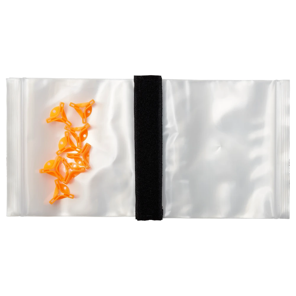 Klapp-Etui mit Zip Lock-Beuteln für aufgeriggte Line Thru-Köder oder Vorfächer, inklusive 8 Hakenschützern für Drillinge in der Größe #8-5. Die Größe beträgt 12 x 12 cm.