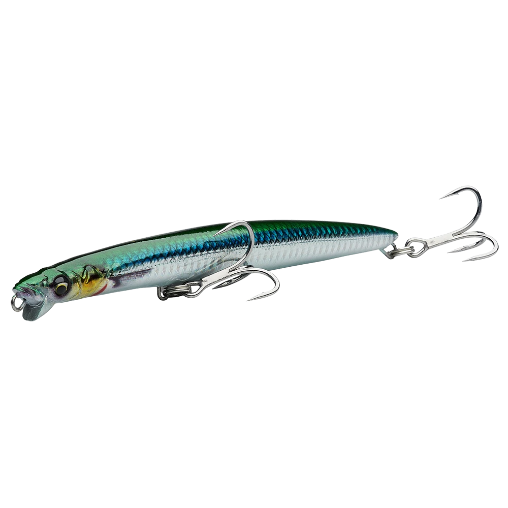 Weitwurf-Pencil mit super realistischem Profil, der auf verschiedene Arten gefischt werden kann, um Attacken von Räubern zu provozieren. Der Köder gleitet und blinkt beim Twitchen aufgrund des „Halblippen“-Designs und fällt mit starken Vibrationen und lautem Rasseln. Perfekt für Amberjacks, Schnapper, Mahi Mahi, Bluefish, Barrakudas und Thunfischarten.