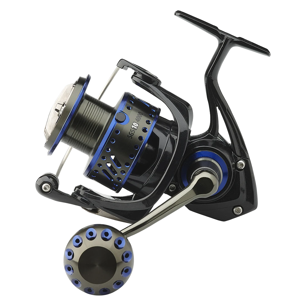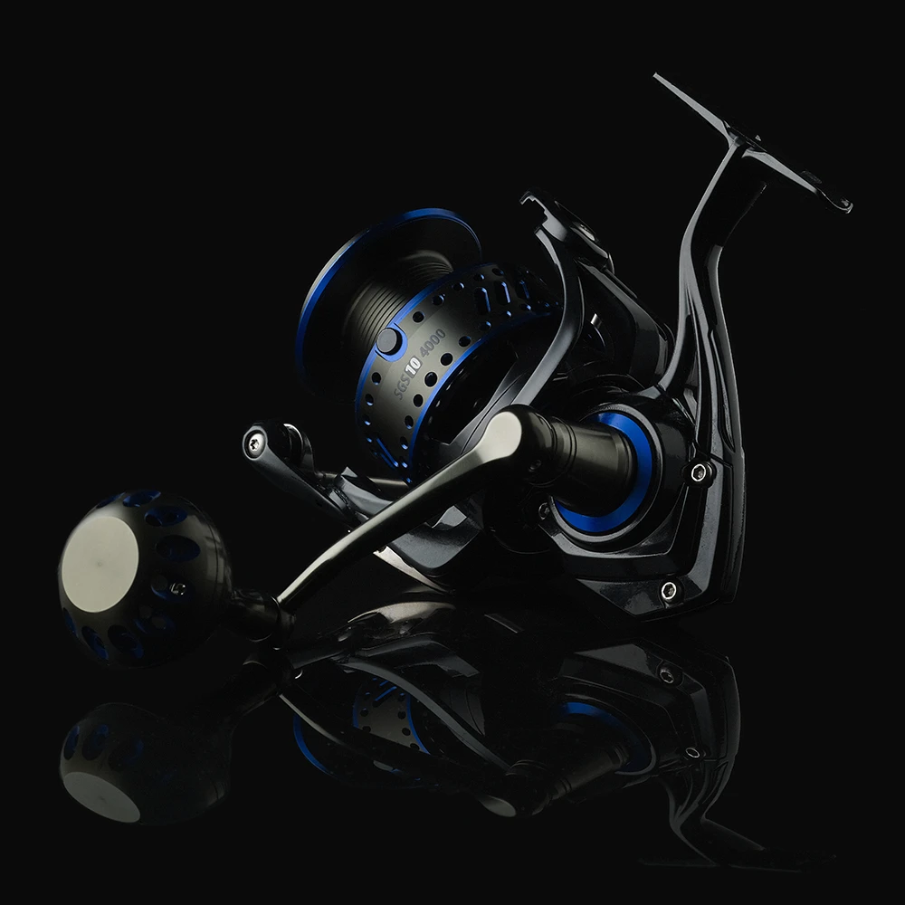 Die SGS10 ist die Referenz aus dem Savage Gear-Spinnsortiment. Für die Rolle kommen ausschließlich die besten Komponenten und Materialien zum Einsatz, kombiniert mit einigen unserer innovativsten Designs und Ideen. Stark und leicht dank Aluminiumkörper, Rotor und Griff, bringt die Rolle in jedem Einsatzbereich die maximale Leistung. Es ist die erste Rolle, die unser temperaturgesteuertes System (TCS) verwendet – eine Kombination aus einem Air Spool-Ventilator und Titanscheiben, um das Bremssystem während des Einsatzes zu kühlen. Wenn eine Bremse überhitzt, kann dies die Funktion beeinträchtigen und so die Lebensdauer erheblich reduzieren. Mit TCS behalten Sie eine kühle Bremse und somit immer eine konstante Leistung. Im Vergleich mit traditionell konstruierten Spulen mit Metallscheiben wird eine Wärmereduzierung von bis zu 30 % erreicht.