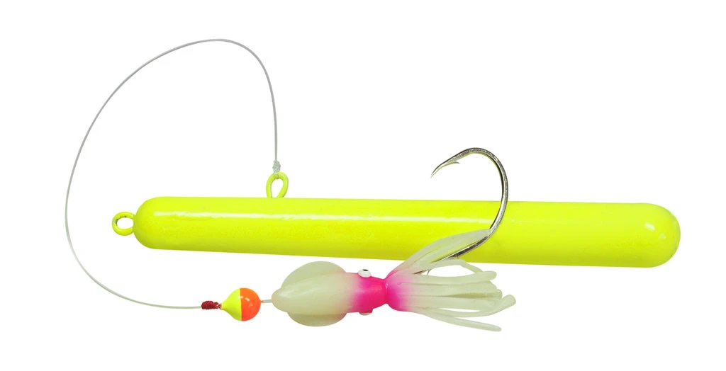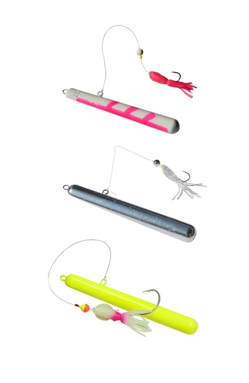 Dieses Hybrid aus Pilker und Naturködervorfach ist speziell für den Zielfisch Steinbeißer ausgelegt. Der Steinbeisser-Klopfer besticht mit seinem anziehenden Äußeren, welches in fluor-gelb gehalten ist. An der Seite des Klopfers ist das 0,80mm starke Vorfachmaterial befestigt, welche am anderen Ende eine Lockperle, einen Leuchtoktopus und einen Einzelhaken der Größe 5/0 besitzt. Der Einzelhaken wird mit Fischfetzen oder Garnelen beködert. In der Gesamtheit aller Komponenten ist dieser Köder sehr fängig. Es gibt ihn in zwei Gewichten von 360g und 580g und in drei verschiedenen Farbvarianten.