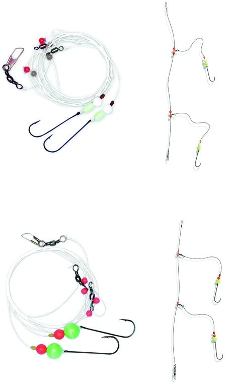 Dieses Vorfach ist in zwei verschiedenen Ausführungen verfügbar. Jedes dieser Dorsch-Rigs besitzt zwei Haken der Größe 2/0 und Lockperlen, welche einen zusätzlichen Reiz auslösen. Dies sind Basisvorfächer für das erfolgreiche Brandungsangeln.